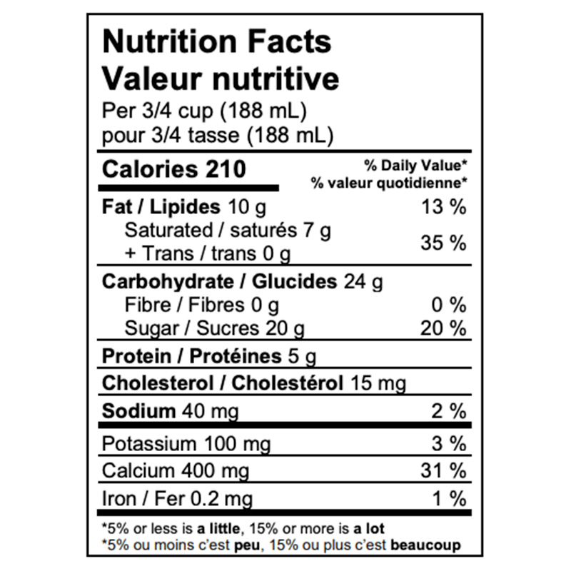 Buttermilk, Cream, Sugars (sugar, corn syrup solids, glucose), Skim milk powder, Water, Cocoa processed with alkali, Graham flour, Enriched wheat flour, Rice flour, Palm oil, Hydrogenated palm kernel oil, Coconut oil, Fancy molasses, Baking soda, Cinnamon, Malted barley flour, Barley malt extract, Modified corn starch, Potassium sorbate, Salt, Sea salt, Soy lecithin, Locust bean gum, Mono & diglycerides, Guar gum, Xanthan gum, Carrageenan, Natural and artificial flavour, Caramel colour, Amaranth