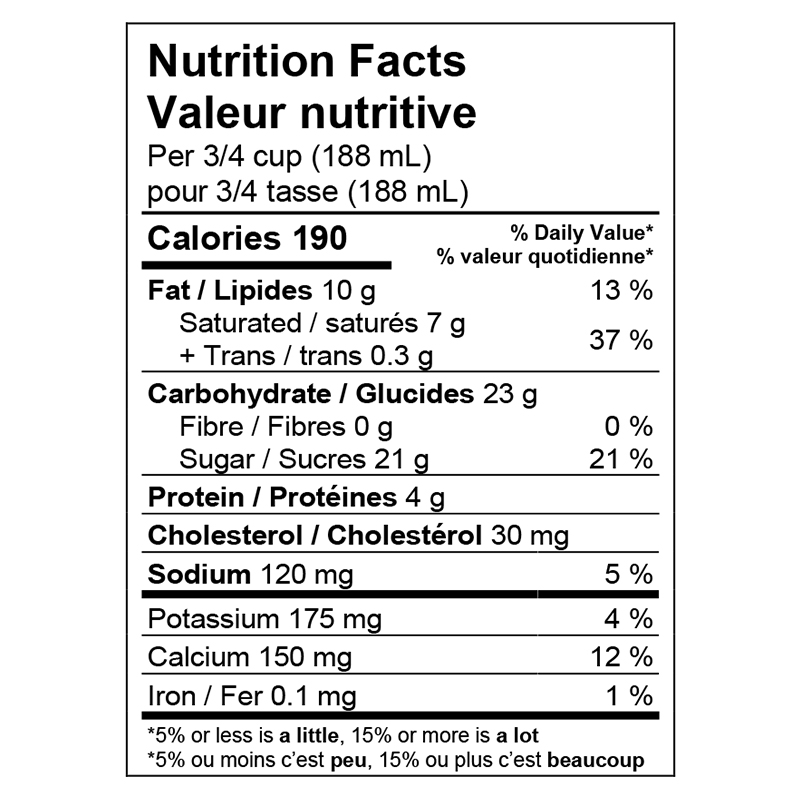 Buttermilk, Cream, Sugars (sugar, corn syrup solids, brown sugar, glucose, sweetened condensed milk, glucose-fructose), Skim milk powder, Water, Modified corn starch, Pectin, Salt, Natural and artificial flavour, Mono & diglycerides, Guar gum, Xanthan gum, Carrageenan, Sodium citrate, Calcium chloride, Disodium phosphate, Potassium sorbate, Tartrazine, Brilliant Blue FCF, Sunset yellow FCF, Caramel