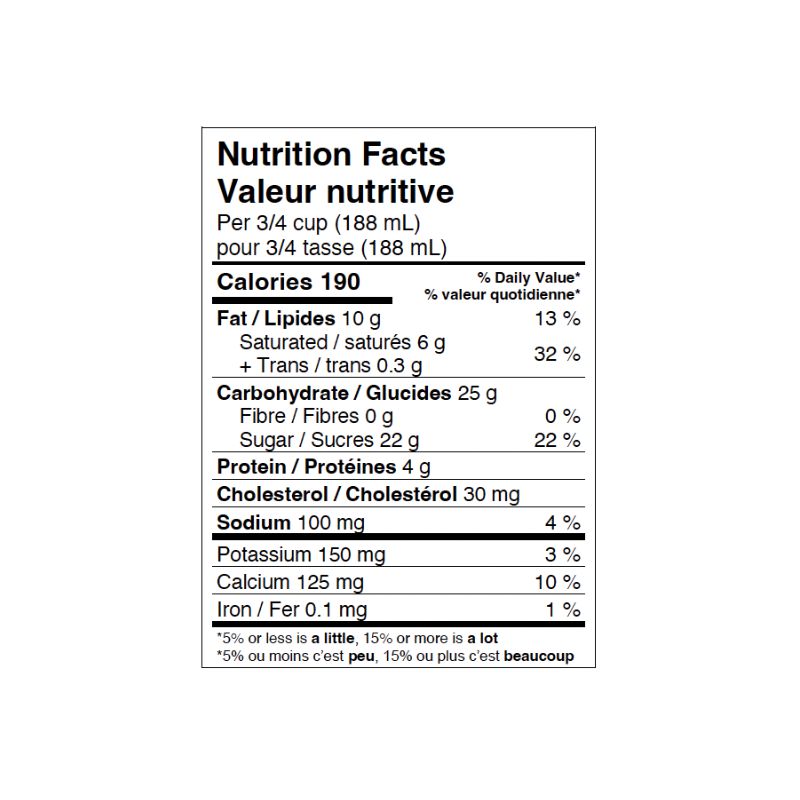 Buttermilk, Cream, Sugars (sugar, corn syrup solids, glucose), Skim milk powder, Water, Modified corn starch, Salt, Potassium sorbate, Sodium benzoate, Citric acid, Artificial flavour, Mono & diglycerides, Guar gum, Xanthan gum, Carrageenan, Titanium dioxide, Brilliant blue FCF, Tartrazine, Amaranth